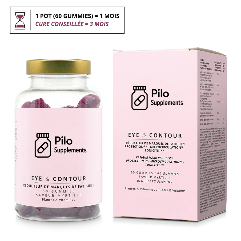 Bulking agent: maltitol syrup; Water; Gelling agent: fruit pectin; Acidifier: citric acid; Green tea leaf extract (Camellia sinensis L.); Vitamin C (ascorbic acid); Natural raspberry flavor; Sweet orange extract (Citrus sinensis); Acid regulator: sodium citrate; Grap’Inside™: grape seed extract (Vitis vinifera L., France); Blueberry extract (Vaccinium myrtillus L.); Coating agent: carnauba wax (Carnauba cera L.); Sunflower oil (Helianthus annuus L.); Sweet potato (Ipomoea batatas (L.) Lam.) and carrot (Daucus carota) concentrate; Vitamin A (retinol acetate).